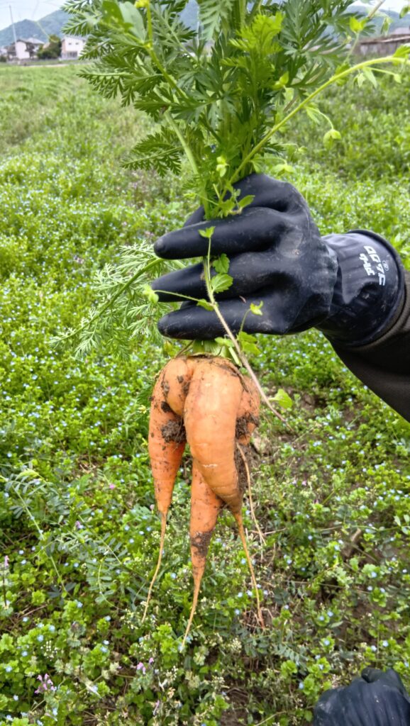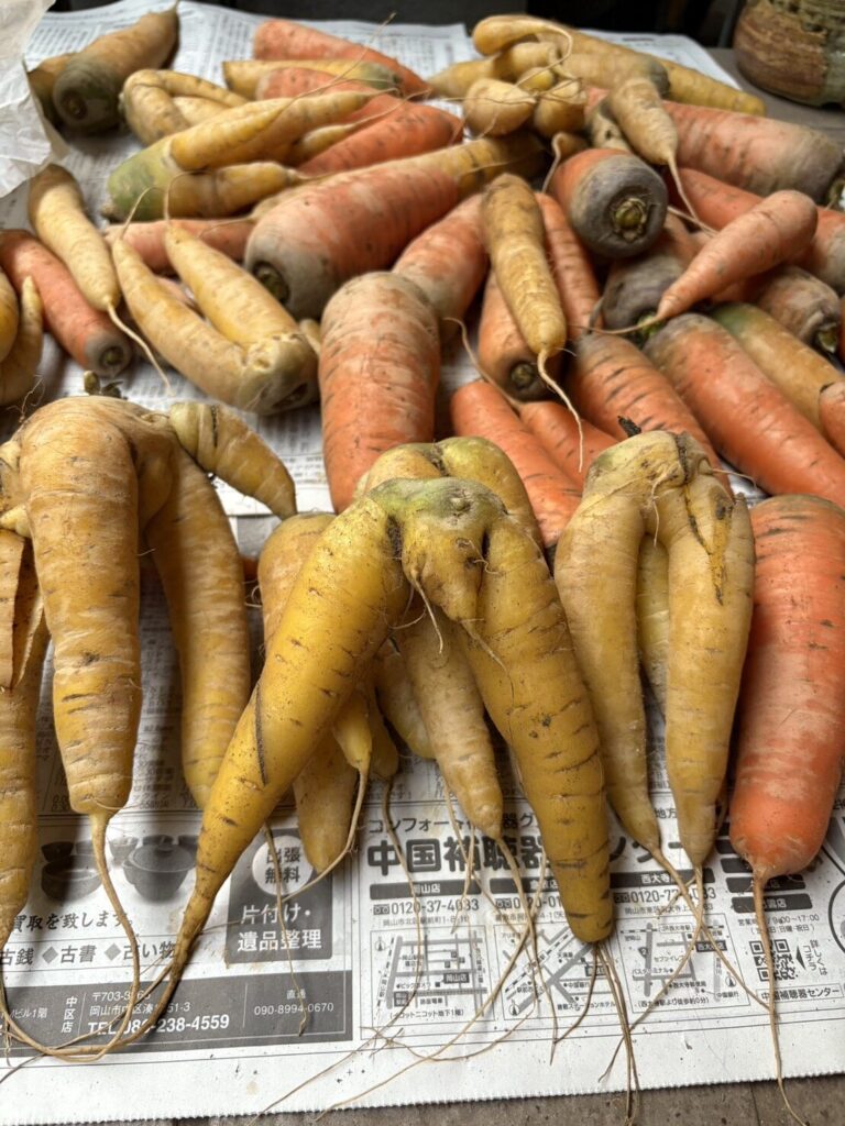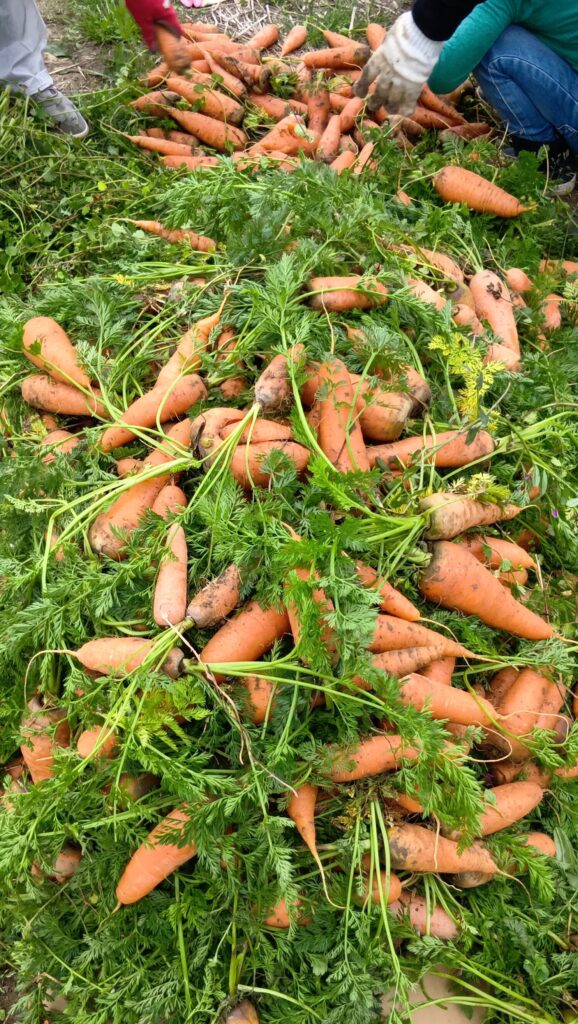 今回、大量の人参を収穫させていただきました。各自持ち帰りましたが、いくらかの人参は少し手を加えて保存しておき、秋ごろのマルシェで何かしらの品にして販売する予定です。詳細が決まりましたら告知いたします。