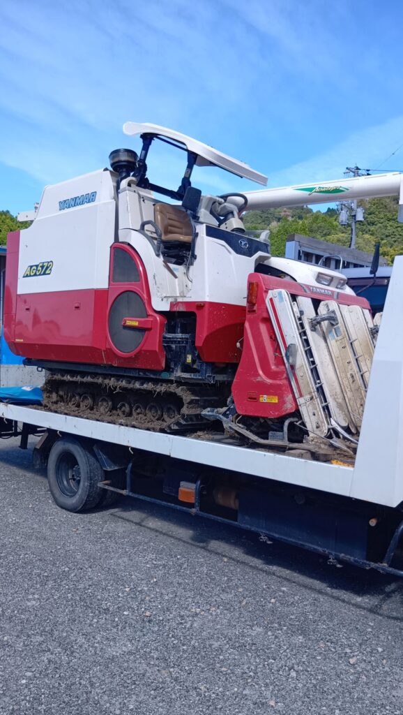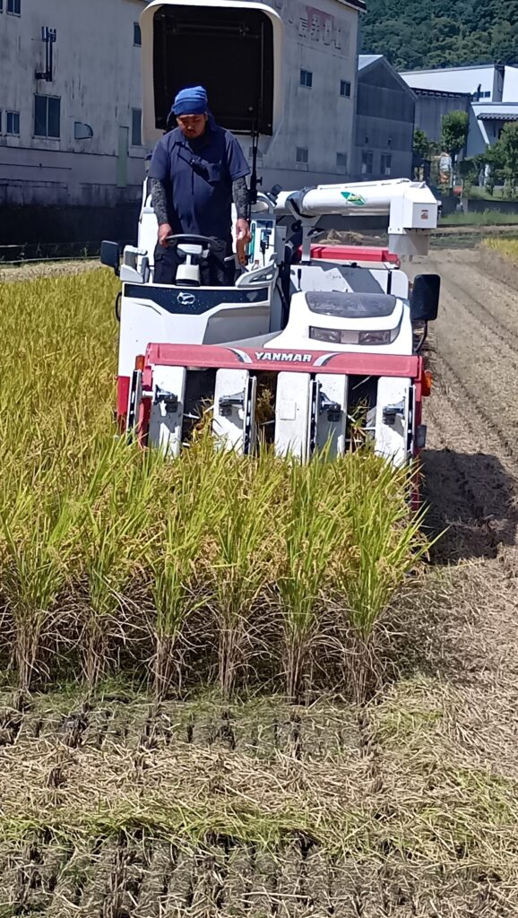小さい方のコンバイン。こちらは次男さんが運転されています。クーラーが効くのでちょっと快適だそう(笑)