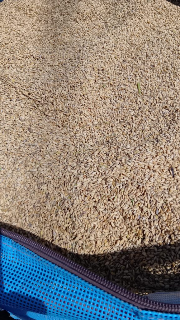 今年のお米の出来は良さそうとのこと。稲刈りは2か月間くらい行われます。9月に入って雨が多かったので、稲刈りがなかなか進まず、ちょっと計画よりは遅れている感じとおっしゃっていました。