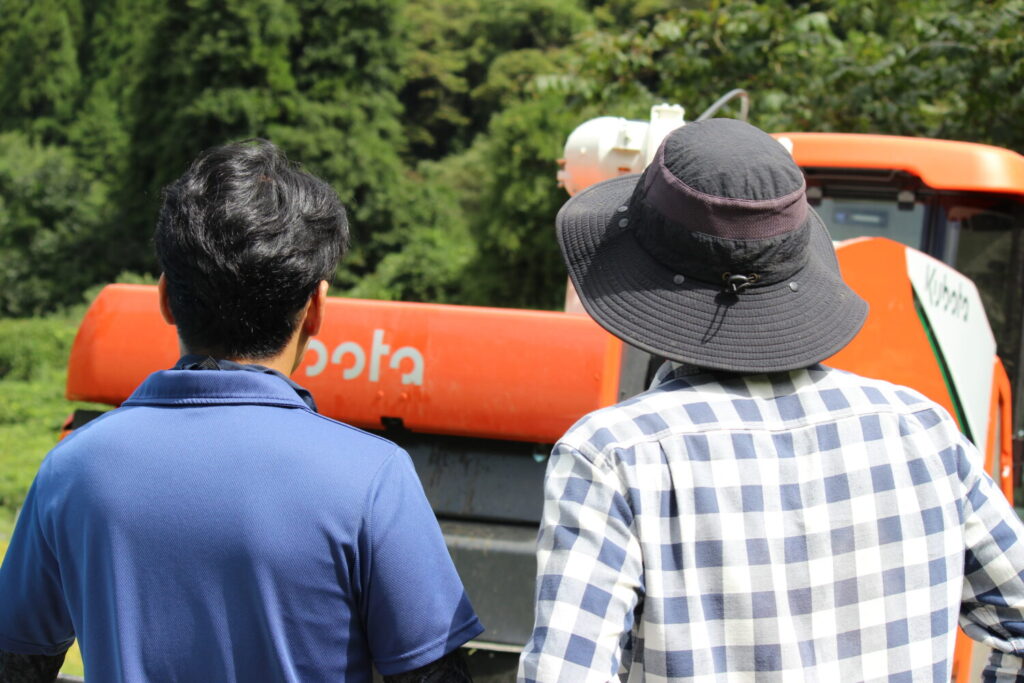 大きい方のコンバインを運転するのは社長の長男さん。運転技術もすばらしく、頼もしいです。