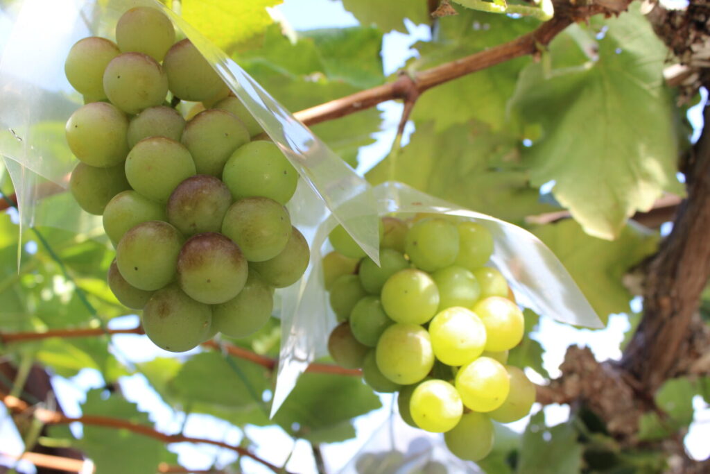 気温の下がり方によって色づきが違ってくるので、時期は多少前後すると思いますが、出荷は11月の中旬からを考えています。以前のように11月から凍えるような温度になるとぐっと色がつくのですが、最近は気温が高めなのでなかなか色がつかないように感じています。ハウスの中には800房くらいのあると思いますが、出荷は12月の上旬には終わります。12月の第1日曜日にはマルシェに出す予定です。